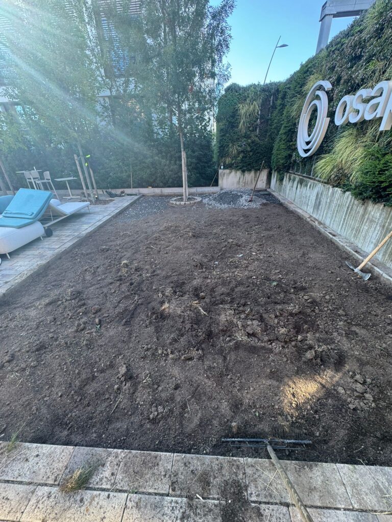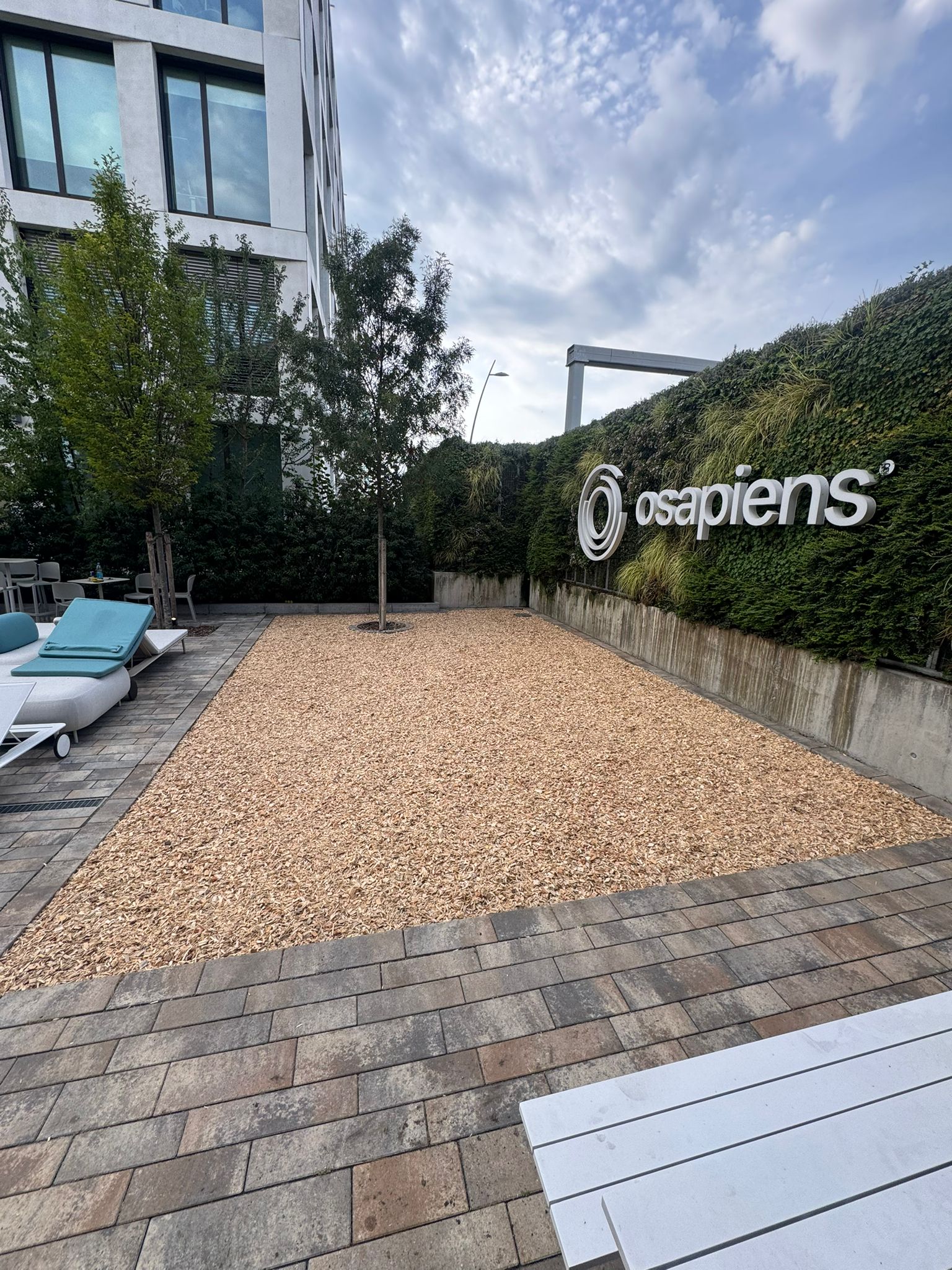 Für unseren Kunden Osapiens haben wir die bestehende Außenfläche komplett neu gestaltet und in eine einladende, moderne Aufenthaltszone verwandelt.